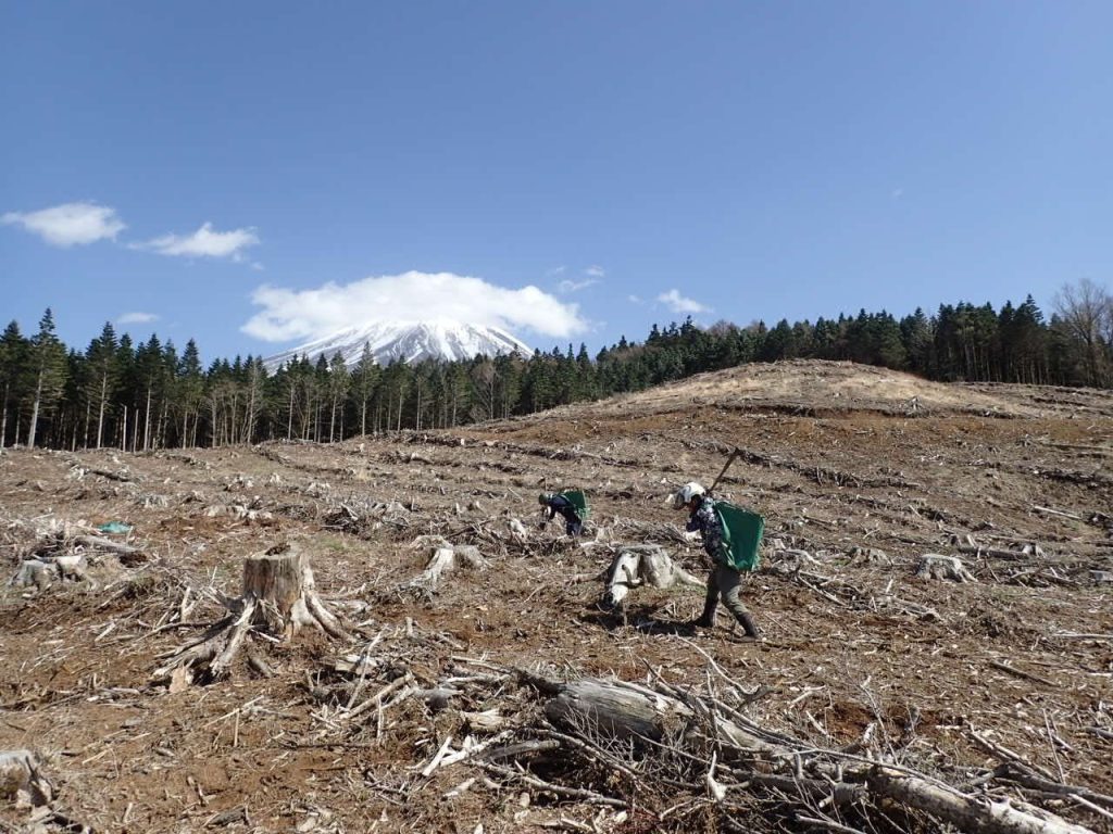 しかし現在、富士山の森は気候変動やシカの食害、乱開発など数多くの課題に直面しています。そのため、当組合では富士山麓の環境を守り再生していくための「富士山の森づくり」に力を入れ、富士山の在来種の苗木を植える活動を継続しています。